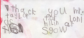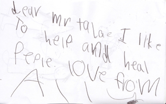 ![]() Mr Taylor, Thanks for teaching me how to do healing. (from Ethan, 6) |